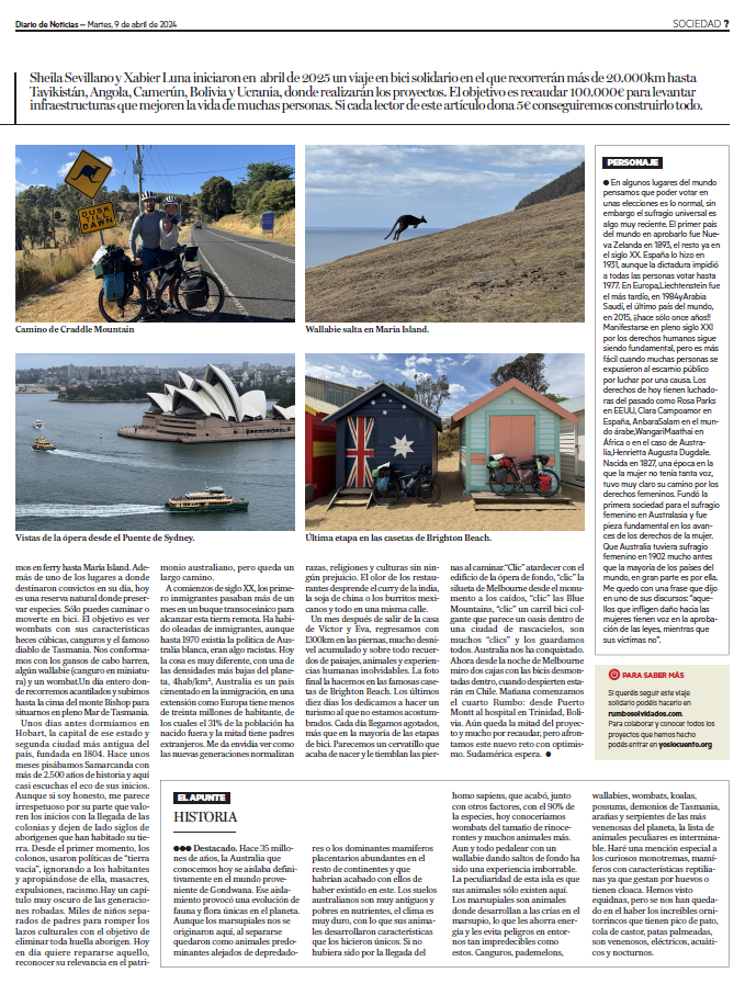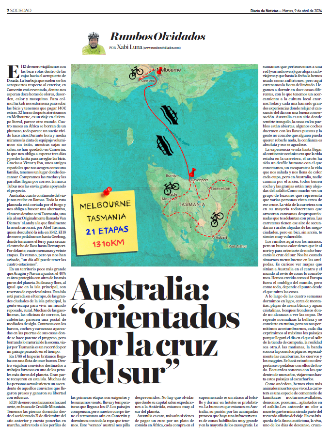 Con el país oceánico cerramos diez meses de rumbos olvidados, el cuarto continente y una experiencia que ha sido un balón de oxígeno del desafío africano. Nuestro plan se ve afectado por los fuegos y terminamos en Tasmania. Un verano peculiar, animales increíbles, muchas acampadas y gente que nos aloja. Hemos disfrutado mucho este país y podéis leerlo en la web aquí o descargar los pdf en las fotos de abajo.